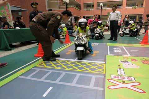 「哈雷電動小警車」深受參訪學童喜愛,交通安全宣導成效良好(彰化警察隊提供)