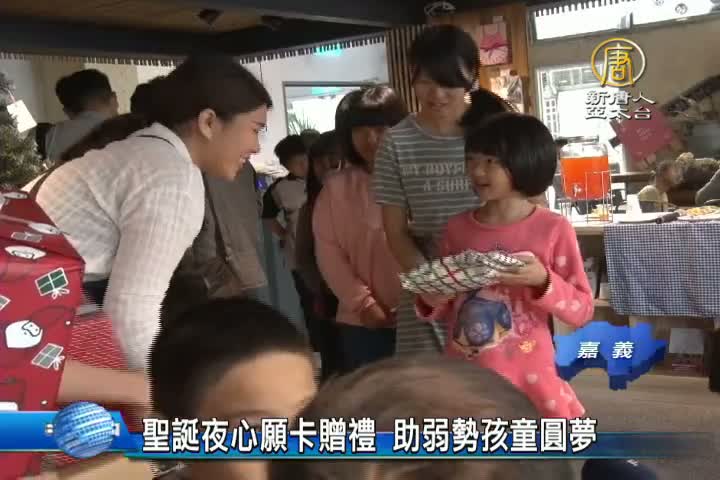 【新唐人亞太台 2016 年 12 月 24 日訊】聖誕節到了,嘉義有飯店業者跟企業公司,舉辦聖誕心願卡圓夢計畫活動,號召民眾一起來捐贈禮物,並且趕在聖誕夜之前,送出聖誕禮物,為弱勢孩童完成聖誕願望。