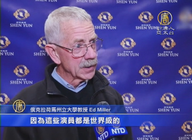俄克拉荷馬州立大學教授Ed Miller:「我認為中國人心中有這樣強烈的願望,可能所處的環境難以表達。私下我和中國人聊天,他們很有思想,也很想表達這樣的感情。神韻演出都展現出來了。」