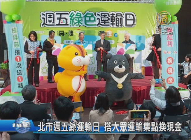 【新唐人亞太台 2016 年 12 月 27 日訊】歡迎回來,為推廣綠色運輸,台北市政府再加碼,從本週開始,訂定每週五為綠色運輸日,只要在北市內,利用悠遊卡,每搭乘1次大眾運輸工具,就可以獲得1點紅利點數,希望藉此提升台北市的綠運輸使用率。