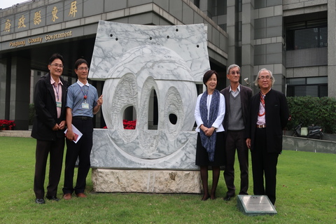 明基友達文教基金會捐贈屏東縣政府白俄羅斯藝術家阿力亞榭.索羅金(Aliaksei Sarokin)創作的大理石雕塑作品「天與地」(Terrestrial and Heavenly)(屏東縣政府文化處提供)