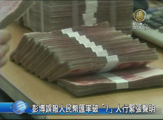 彭博誤報人民幣匯率破「7」 人行緊張聲明