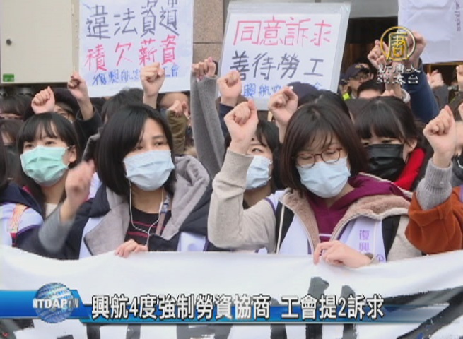 【新唐人亞太台 2016 年 12 月 29 日訊】台北市勞動局今天下午召開第4次復興航空勞資強制協商會議,興航企業工會成員200多人,來到協商大樓前召開記者會,再次要求董事長林明昇出來面對勞工,並給予員工2.5個月至3個月的薪資當補償費和每人新台幣30萬元的行政費用。不過,經過3個多小時協商,還是宣告破局。