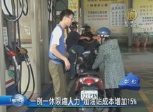 2017-01-06 21:19:28一例一休實施以來,人力密集的服務業影響大,由於週休兩日,加油站不僅人員調度困難、缺工嚴重,人事成本也增加了15%左右,還有打工族,因為休假變多,薪資減少,決定再去找第2份工作。