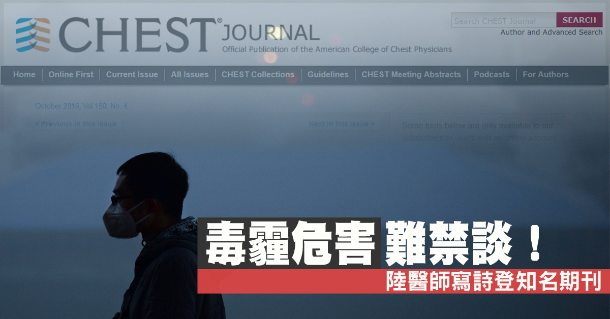 毒霾危害難禁談!陸醫師寫詩登知名期刊