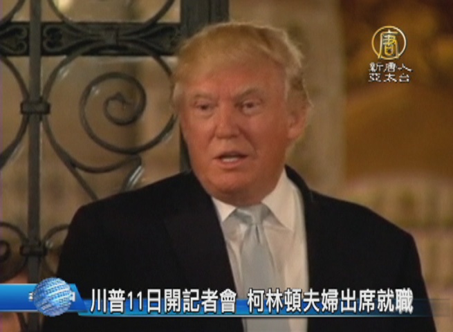 【新唐人亞太台 2017 年 01 月 04 日訊】美國準總統川普今天推文表示,他準備1月11日在紐約召開記者會,但沒有多透露內容,之前川普曾表示針對駭客問題,他知道很多不為人知的事,會不會在記者上透露,備受關注。另外,川普再兩個星期就要就職,民主黨對手希拉蕊和丈夫柯林頓,已經表示會出席川普的就職典禮,見證政權和平轉移的時刻。