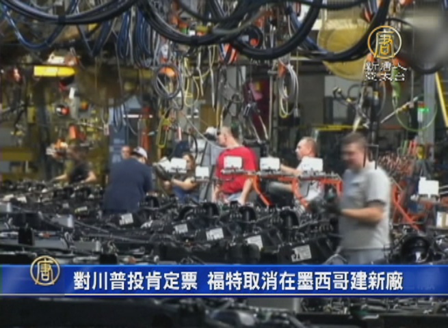 【新唐人亞太台 2017 年 01 月 04 日訊】美國準總統川普將在1月20日上任,美國企業風向似乎也出現變化。川普今天揚言,要對在墨西哥生產部分小型房車的通用汽車公司課徵「邊界重稅」。而就在他發出推文後的幾個小時,通用汽車的對手福特汽車 宣布,取消在墨西哥的16億美元設廠計畫,轉而擴大在密西根州的組裝廠。