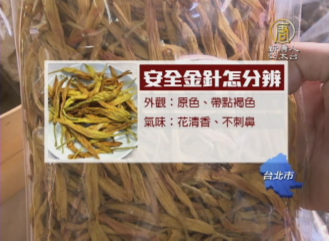 食藥署北區管理中心科長 黃慈穗:「這一個是安全金針,它的顏色還是有淡淡的花的顏色。」