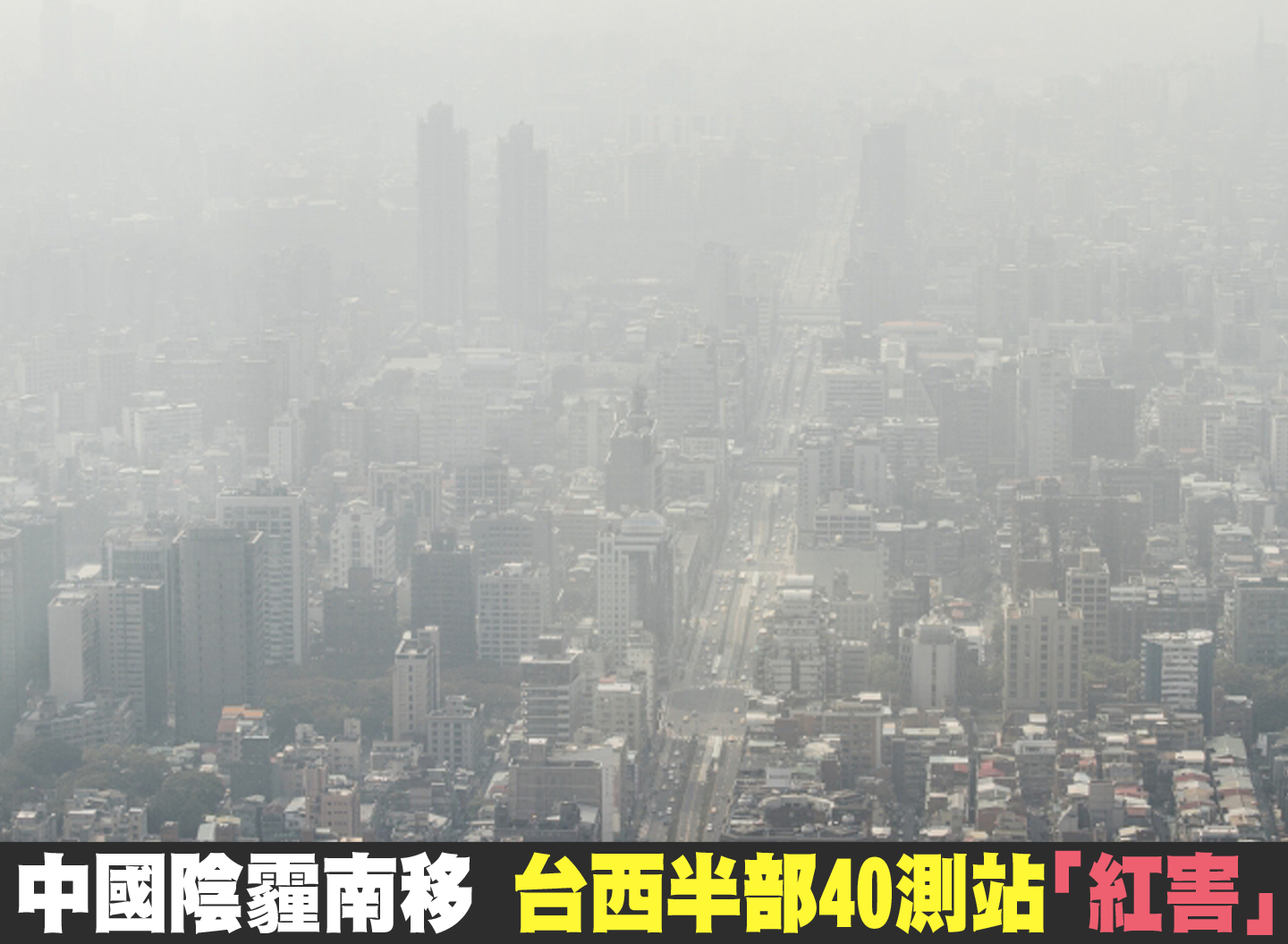 【新唐人亞太台 2017 年 01 月 06 日訊】令中國民眾聞風喪膽的陰霾,台灣也深受其害。隨著東北季風南移,台灣西半部地區,今天空氣很糟糕,據環保署空氣品質監測網顯示,全台高達40個測站,空氣品質指標達到「紅害」等級。環保署表示,西半部因大氣擴散條件不佳,境內污染物累積,呼籲有心臟、呼吸道及心血管疾病患者、孩童及老年人,減少戶外活動,必要外出時也要配戴口罩。
