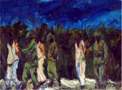 戒嚴時期受害藝術家陳武鎮描繪228受難者的畫作「風中的名字」。(陳武鎮畫作/二二八國家紀念館提供)