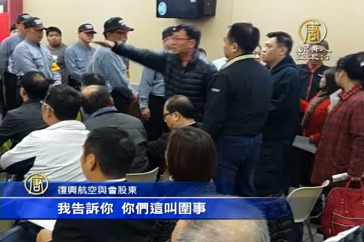 【新唐人亞太台 2017 年 01 月 11 日訊】復興航空今天舉行股東臨時會,討論解散案,由董事長林明昇親自主持,共討論三案,包括公司解散案、撤銷股票公開發行案 ,以及 員工資遣案。上午11點左右,三案快速完成表決通過,宣告興航正式終結。但小股東和興航工會成員在會後,控訴股東會黑箱投票,對於議案也根本沒有充分討論。