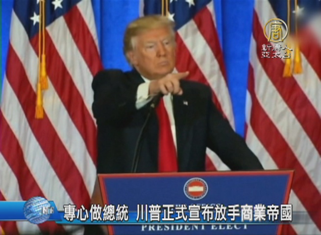 【新唐人亞太台 2017 年 01 月 12 日訊】好,川普在首場記者會上否認不實報導,也再次喊話投資美國;至於川普自己的事業版圖,他表示,會任命兒子接手,但保留對川普集團的所有權。