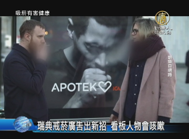 【新唐人亞太台 2017 年 01 月 15 日訊】如果廣告看板裡的人物對你咳嗽,你的反應會是什麼?瑞典首都的街頭,就出現了一個互動式廣告看板,只要吸菸者一經過,螢幕中的人物,就會朝著吸菸者咳嗽,瑞典別出心裁的戒菸廣告,吸引不少路過民眾的目光。