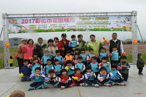 【新唐人亞太台 2017 年 01 月 16 日訊】彰化市磚磘里芳草街及環河街132巷間30公頃農地,每年固定一、二期種植水稻,104年開始在冬季裡作期間,利用約10公頃的農田種植大波斯菊、黃波斯菊及向日葵等景觀作物,不但美化農地,更吸引大眾遊客前來花田裡賞花,新年期間是賞花走春的好去處,今年花海園區範圍,新增至25公頃左右的農地種植景觀作物,將水稻收割稻稈,製作出多樣稻稈造型藝術體驗區,讓遊客親自來體驗製作稻草人的樂趣。