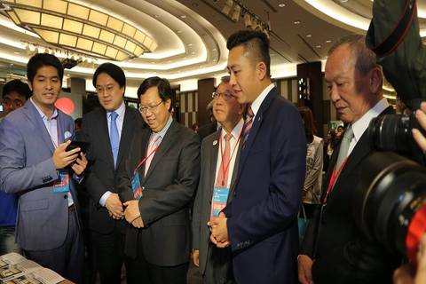 安可爾科技黃建堯執行長在新竹會議現場上,使用平板上的APP開、關桃園市中原大學體育館室內照明,為北臺五位首長介紹並展示物聯網LED電源產品的遠端照明控制功能。
