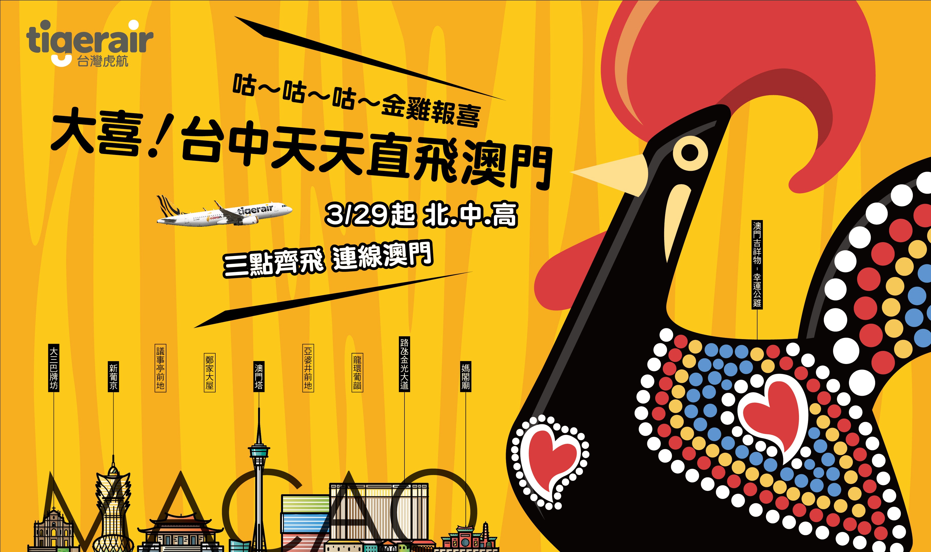 金雞報喜 台灣虎航開賣台中-澳門航線