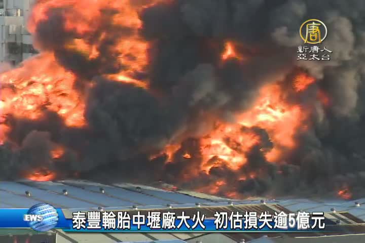 【新唐人亞太台 2017 年 01 月 18 日訊】泰豐輪胎中壢廠,昨日爆發嚴重火災,泰豐輪胎今天停止交易,官方表示,這次大火沒有人員傷亡,但初估生產設備和庫存損失達5億元以上。