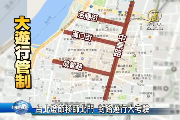 【新唐人亞太台 2017 年 01 月 20 日訊】每年元宵的重頭戲台北燈節,今年(2017年)首度移師北門登場,並且將在2月11日當天把中華路封閉,舉辦封街大遊行,外界擔心周遭的交通問題,北市觀傳局長簡余晏表示,交通會帶來一定程度的衝擊,已成立專案小組,做妥善規劃。