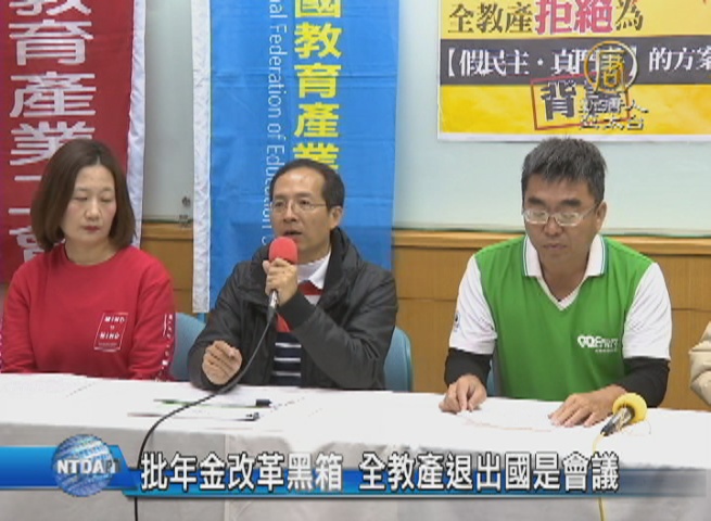【新唐人亞太台 2017 年 01 月 21 日訊】歡迎回來,年金改革國是會議明天就要登場,蔡英文總統將親自出席,包括國民黨親民黨在內,主要政黨都不缺席,但全國教育產業總工會召開記者會,不滿年金改革委員會公布的改革內容,質疑黑箱,他們決定退出國是會議。