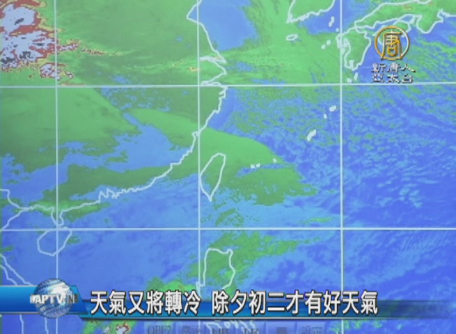 【新唐人亞太台 2017 年 01 月 24 日訊】關心天氣,氣象局表示,明後兩天因為大陸冷氣團南下,天氣又將轉冷,不過到了星期五除夕白天,一直到初二星期日,冷氣團將會減弱;全台多雲到晴,非常適合外出走走。