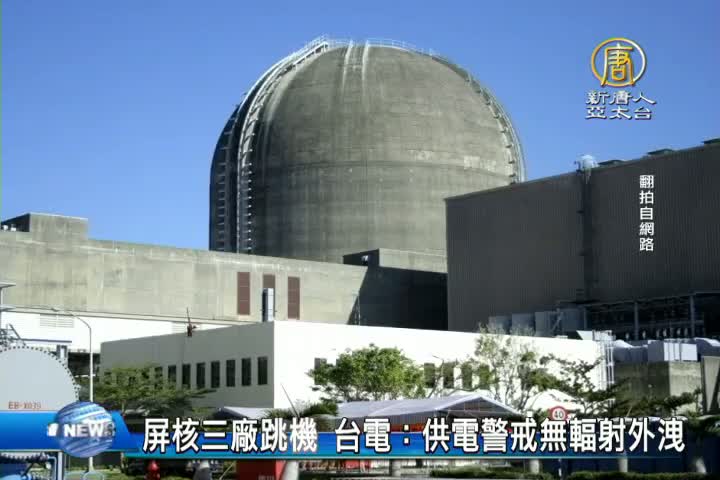 【新唐人亞太台 2017 年 01 月 24 日訊】位於屏東墾丁的台電核三廠一號機,今天(24日)清晨 6點多發生跳機,對此,台電表示,反應爐跳機並沒有造成輻射外洩、也沒有核安疑慮,目前初步找到是馬達供電的元件故障所導致,正進行全面檢修。另外,最近天冷,全台用電量高,又碰上核電廠多部機組正在歲修,讓今天處於「供電警戒」的橘色燈號,為確保供電,台電今天將全面中止不必要的機組測試,加強供電。