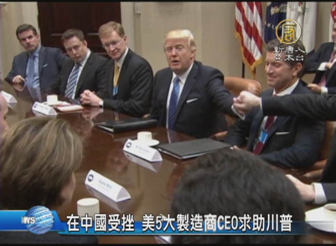 【新唐人亞太台 2017 年 01 月 25 日訊】美國總統川普,在橢圓辦公室,會晤了一群製造商CEO。其中有五家製造商,包括,美國鋼鐵公司、美鋁、惠浦、康寧和 Under Armour,他們請求川普幫助,反擊中共的不公平競爭。他們遇到的問題包括,中國產量過剩、削價競爭。而 Under Armour 在中國遭遇山寨品牌,並認為,這已經是美國公司面臨的一大挫折。