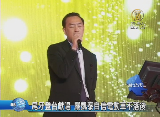 尾牙登台獻唱 嚴凱泰自信電動車不落後