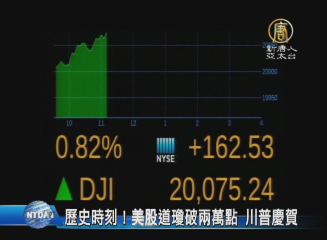 【新唐人亞太台 2017 年 01 月 26 日訊】早安新唐人,先帶您看到,美國總統川普上任不到一個星期,美股今天迎來重大歷史性一刻,道瓊工業指數在開盤後不久,就衝破2萬點歷史關卡。