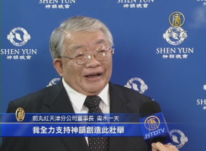 前丸紅天津分公司董事長 青木一夫:「觀神韻讓我了解到,世界上竟有如此好的中國歷史和文化,現在的共產中國並不是真正的中國。再過幾年中國就會發生變化,那時就會產生世界共通的,屬於我們自己的文化、思想和宗教。我全力支持神韻創造此壯舉。」