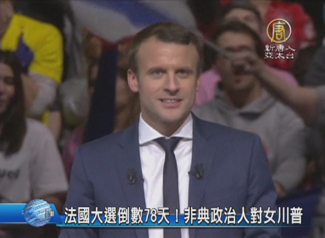 【新唐人亞太台 2017 年 02 月 05 日訊】再來看到,法國再78天就要舉行總統大選,「非典型」新政治人物 馬克宏 崛起,他主張打破左右派的間隔,被認為是親歐派。另外,法國極右派候選人雷朋 ,週六公佈她的政見,明白主張法國退出歐盟、法國優先、限制移民、製造業回流,被認為是法國版的女川普。 外界認為,接下來選戰,可能是 馬克宏 與雷朋 的對決。