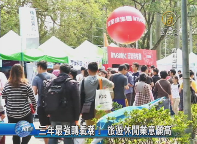【新唐人亞太台 2017 年 02 月 06 日訊】人力銀行公布最新調查,過年前一個月,有13萬人尋求轉職,創近三年來新高,當中旅遊休閒業轉職意願最高,人力銀行表示,休閒產業因為工時長加上相對低薪,本來流動率就高,再加上陸客來台銳減,才會讓轉職潮升溫。