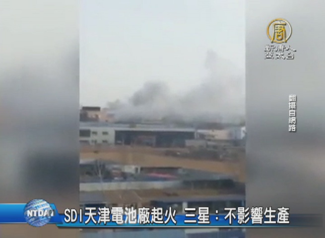 【新唐人亞太台 2017 年 02 月 09 日訊】三星 Note 7自爆風波後,問題直指電池設計缺陷,而作為三星旗下,電池主要供應商的三星SDI,位於天津的廠區,昨天上午冒出滾滾黑煙,相關照片與工廠爆炸流言,一度在網路瘋傳。也有分析指出,火災可能影響三星新手機 Galaxy S8的電池供應。但三星發言人隨後澄清,只是廢棄品倉庫起火,火勢已迅速撲滅,並強調不會影響生產作業。