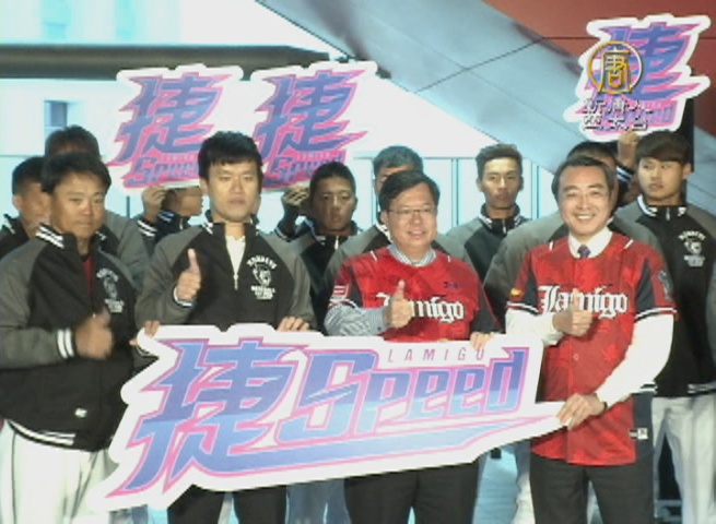 桃捷公司董事長 劉坤億:「我們也在談要有一個彩繪的車廂,同時在球季的時候,我們也要讓我們的站務人員能夠穿Lamigo的一個球衣,營造一個整個Lamigo桃猿隊這樣的一個意象。」