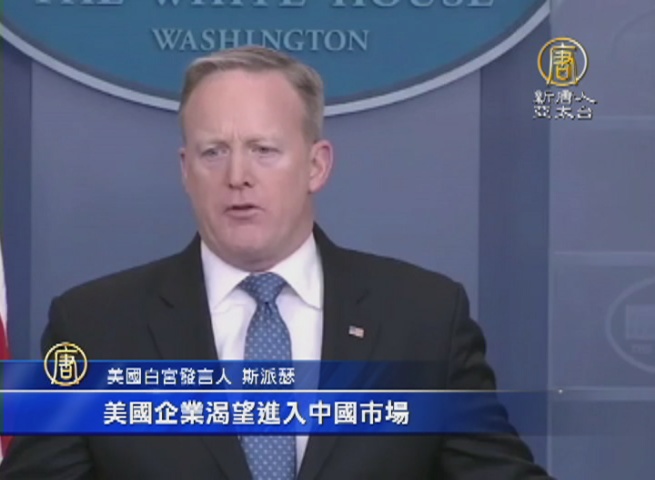 美國白宮發言人 斯派瑟:「瞭解美中關係對美國而言非常重要,總統川普也經常提到中國,他明白,為了國際經濟利益,美國企業渴望進入中國市場,但也清楚要顧及國家安全利益,所以,他會盡其所能,促進美中間發展建設性關係,期待推動美中關係向前發展。」