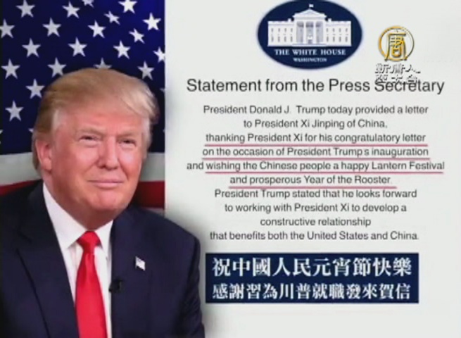 川普2月8號致函習近平,祝中國人民元宵節快樂,感謝習近平為川普就職發來賀信,期待發展「美中建設性關係」。