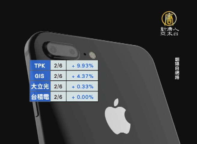 【新唐人亞太台 2017 年 02 月 12 日訊】再來看到,蘋果上季財報,數字優於預期,帶動科技業類股,淡季不淡,尤其今年下半年,計畫推出的iPhone8將大幅改款,相關供應鏈可望受惠,蘋概股仍是上半年最值得期待的產業鏈。