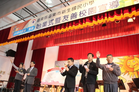 【新唐人亞太台 2017 年 02 月 13 日訊】新年剛結束,國中小也開學了,台東縣長黃健庭今(13日)參與新生國小友善校園週宣導,希望小朋友在學校要相親相愛,營造「反霸凌、反毒、反黑」的溫馨友善校園環境,營造安全的學習環境,建構健康和諧友善的校園風氣。