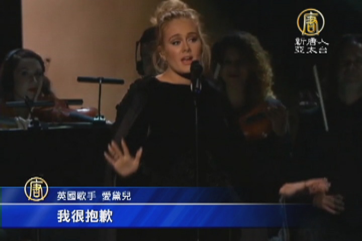 【新唐人亞太台 2017 年 02 月 13 日訊】國際娛樂消息再來看到,第59屆葛萊美音樂獎今天登場,英國「靈魂歌姬」愛黛兒,已經先抱回最佳流行歌手和最佳流行專輯兩獎,而她在向已故歌手喬治麥可,獻唱致敬時,一度哽咽,後來,愛黛兒自己要求,重新再唱過。