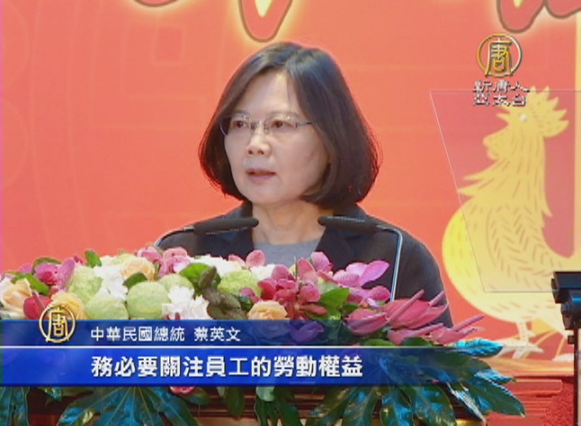【新唐人亞太台 2017 年 02 月 14 日訊】國道車禍,再度喚起企業對一例一休的重視,總統蔡英文今天(14日)出席工商團體新年聯誼會,致詞強調,務必關注員工勞動權益,讓員工得到充分休息,而同一天,也是全國財經會議,工商團體、貿協負責人與經濟部長李世光展開會前會,兩岸議題也列入討論。