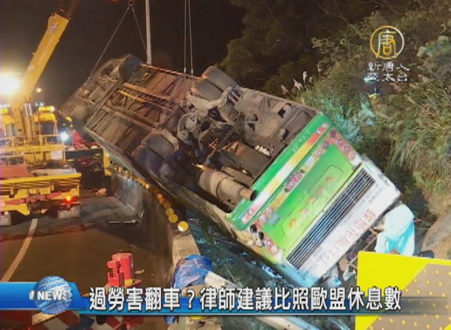 【新唐人亞太台 2017 年 02 月 15 日訊】追查國道遊覽車翻車事故原因,現在矛頭指向旅行社,壓榨司機、導致過勞,但長期以來,台灣大客車駕駛的連續休息時間明顯不足,可能才是問題關鍵所在。