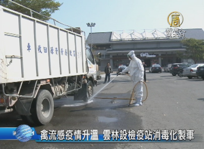 【新唐人亞太台 2017 年 02 月 16 日訊】歡迎回來,台灣禽流感疫情擴大,雲林縣政府公告,從今天開始,一直到下個月15日,在西螺設置檢疫站,任何運送畜牧屍體的化製車,進入縣內,都需要在檢疫站進行全車消毒。