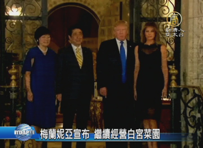 【新唐人亞太台 2017 年 02 月 16 日訊】美國第一夫人梅蘭妮亞2月11日與日本首相安倍晉三的夫人一起游覽日本花園時宣布,將保留前第一夫人蜜雪兒八年前一手打造的白宮廚房菜園。
