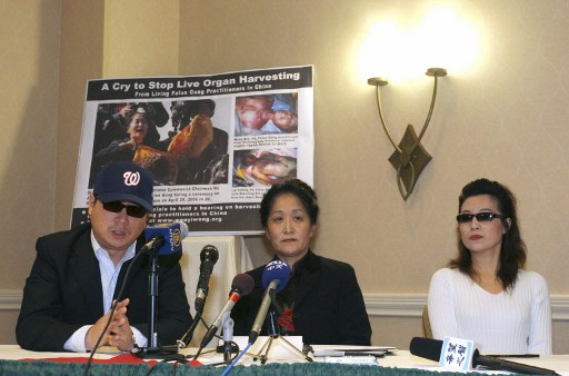 在2006年4月26日在弗吉尼亞州阿靈頓舉行的新聞發布會上,中國記者彼得、醫學博士王文儀、證實中共當局活摘法輪功學員器官的證人安妮出席(AFP PHOTONicholas KAMM)