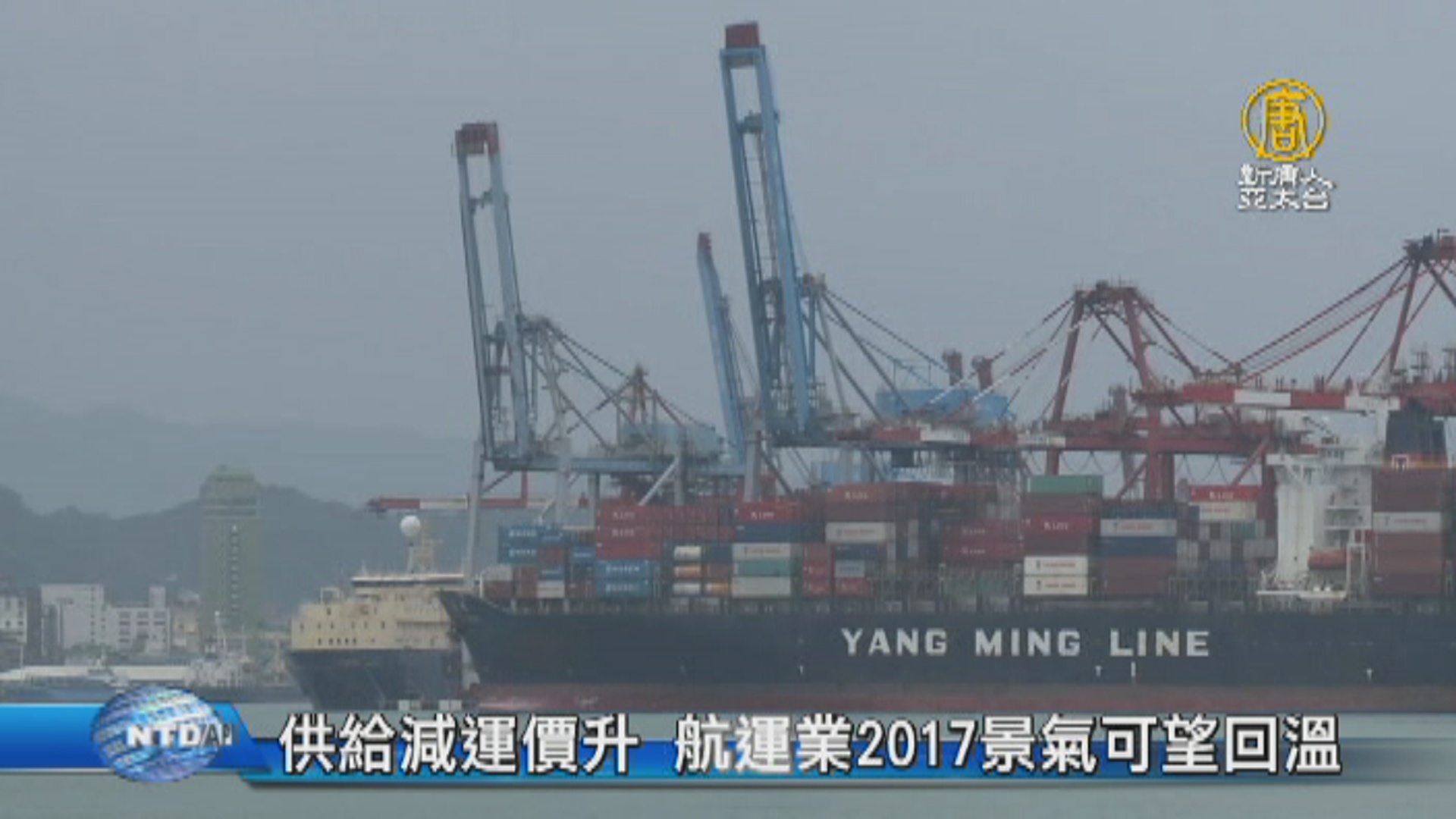【新唐人亞太台 2017 年 02 月 18 日訊】全球貨櫃航運業或許即將擺脫谷底,等來春燕,2017年市場運價已明顯回升,主因是南韓韓進海運破產,還有貨櫃航運業者紛紛整併,也有企業大老表示,散裝航運業景氣也將好轉。