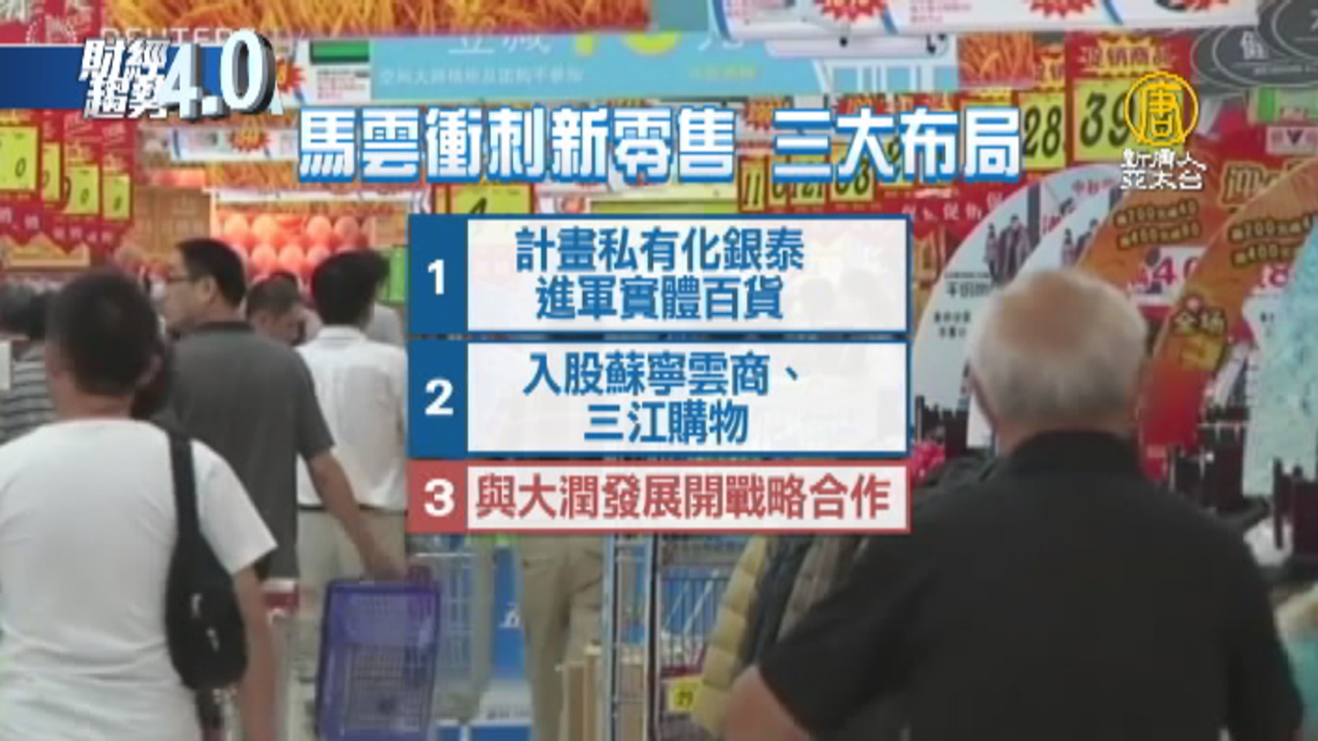【新唐人亞太台 2017 年 02 月 19 日訊】關鍵時刻,帶您迅速掌握潮流趨勢,歡迎您收看財經趨勢4.0,我是沈唯同。首先帶您關注,有消息傳出,馬雲的阿里巴巴,對中國大潤發有興趣,雙方的交易案,已經交涉了兩個月。也有媒體報導,不只阿里巴巴,騰訊、蘇寧,也都在洽談投資中國大潤發。線上線下,強強結合,引發市場的高度關注。