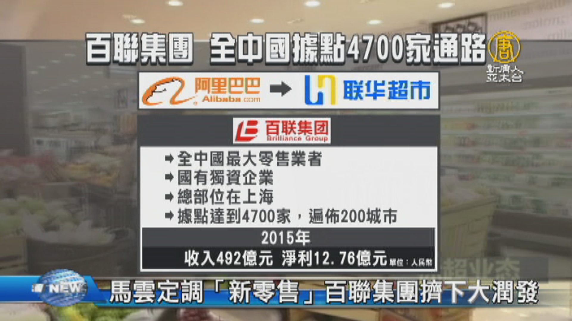 【新唐人亞太台 2017 年 02 月 20 日訊】上周周末,中國大潤發傳出喊賣,一度傳出阿里巴巴也是買家之一。不過今天確定, 中國電商阿里巴巴,最後找上全中國最大零售業者,百聯集團,布局新零售戰略,可說成為市場矚目焦點。