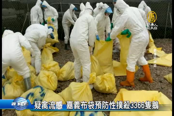 【新唐人亞太台 2017 年 02 月 23 日訊】好,四天沒有發現H5N6新疫情,農委會宣布解除禁宰令,不過各縣市政府不敢掉以輕心。嘉義縣布袋鎮一處養鵝場,昨天發生鵝 異常死亡,立即採樣送驗,由於鵝隻身上已經出現於禽流感的明顯症狀,因此今天立刻決定不等待檢驗結果,先預防性撲殺,上午一共撲殺3366隻;這也是今年禽流感疫情爆發後,預防性撲殺的首例。