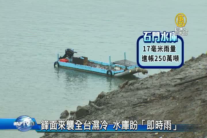 【新唐人亞太台 2017 年 02 月 23 日訊】繼續來看到,隨著鋒面來報到,水利署把握機會,昨天用人工增雨,替石門水庫進帳250萬噸、約1天的用水量。而這波冷空氣,除了帶來雨水,還有低溫,今天開始一直到下周一,都是又濕又冷的天氣型態,尤其北部,最低溫將下探11度。