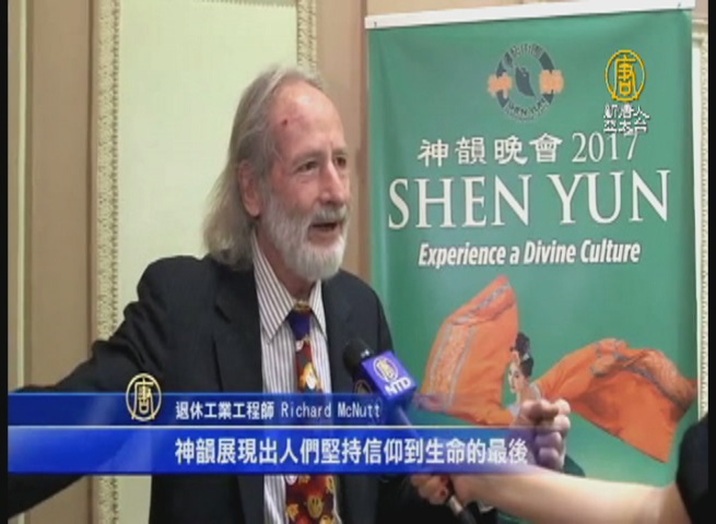 退休工業工程師Richard McNutt:「這些中國人改變我的人生。今晚看神韻讓我想到在喜馬拉雅山區時,那裡有3500座寺廟,現在只剩下兩座。神韻展現出人們堅持信仰到生命的最後,驕傲而堅強直到最後,還保持平衡平和。」