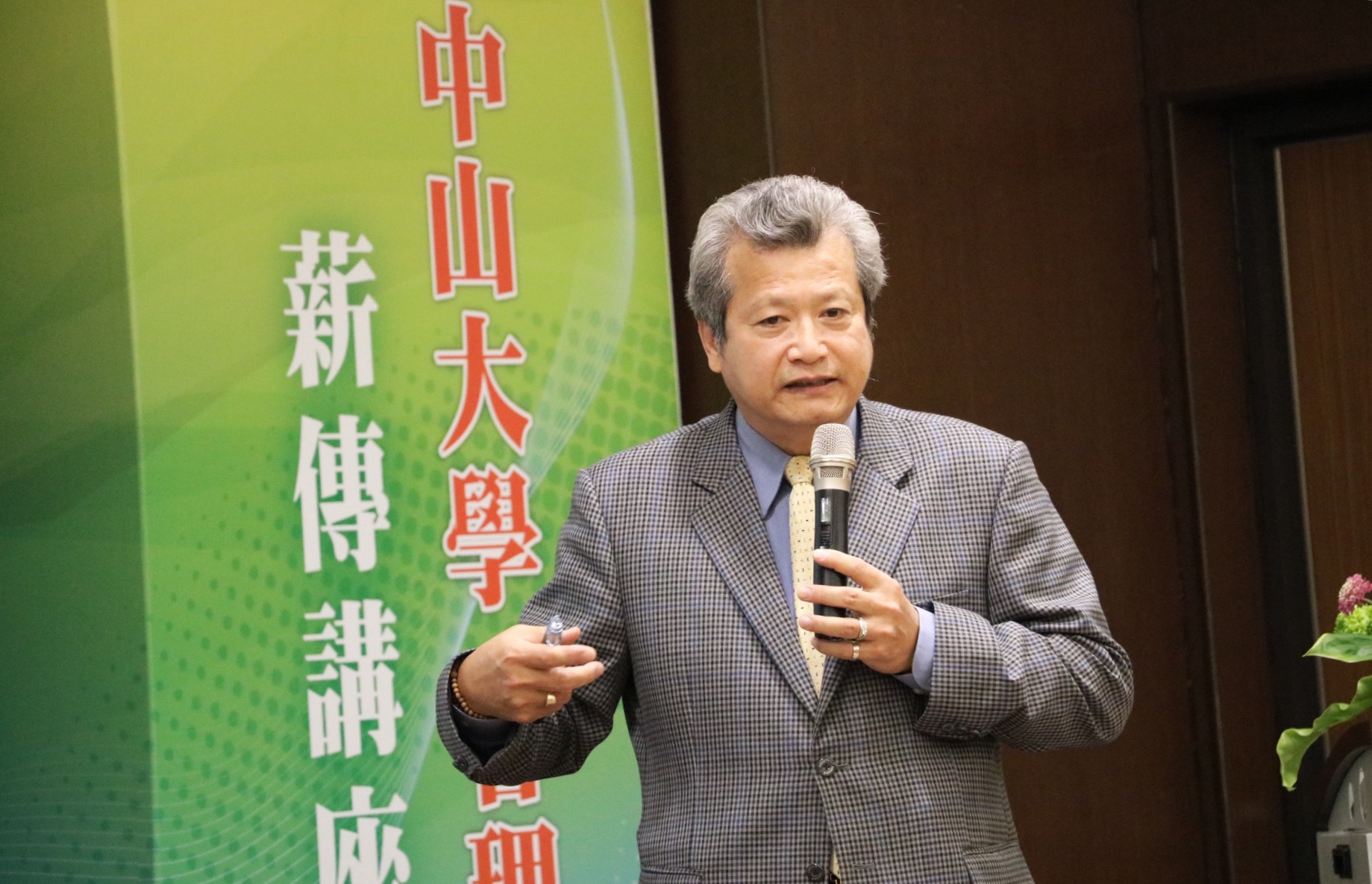 中鋼董事長翁朝棟強調,企業無論至何處發展,一定要包容與尊重當地文化,國際化比的不是英文好不好,而是能不能理解並尊重不同群族。(圖/國立中山大學提供)